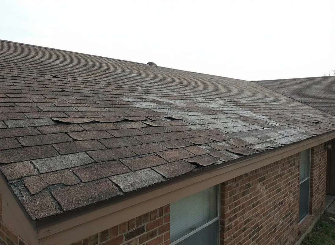 Emergency repair after severe hail storm. Replaced damaged shingles and repaired flashing around chimney.