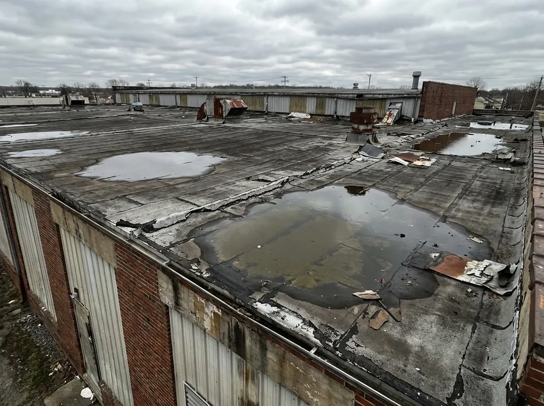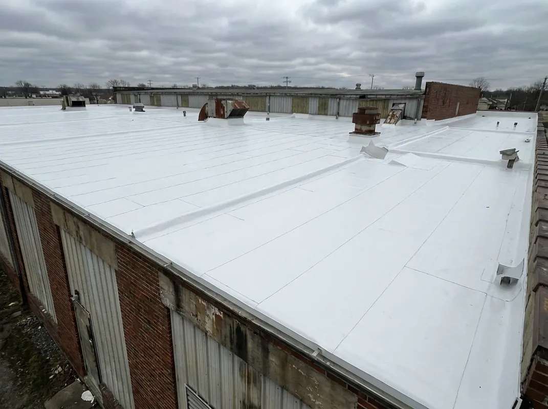 New TPO roofing system installation for a 10,000 sq ft commercial building. Includes improved drainage system.